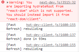 🚨 Warning: You are importing hydrateRoot from "react-dom" which is not supported. You should instead import it from "react-dom/client"